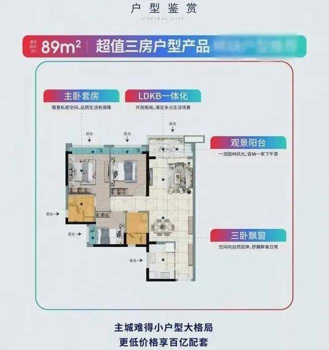 现项目主推建面约85-197方三至四房洋房/空中复式云墅。