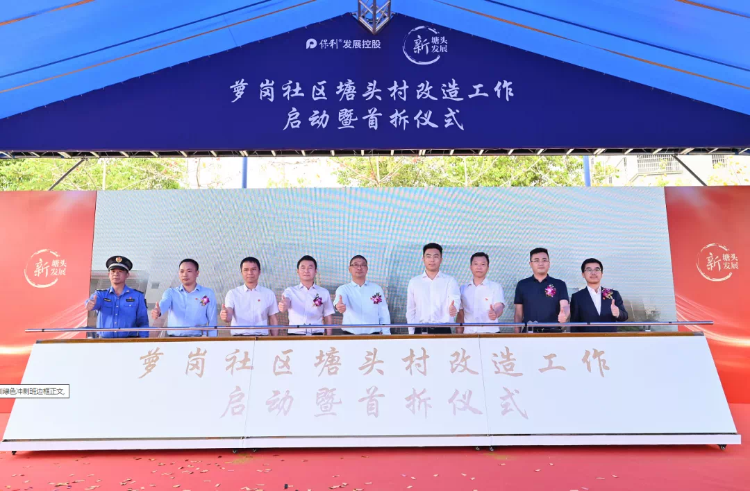 值得注意的是,大家很关注的塘头旧改开发商,也在此次启动仪式上亮相——活动布展宣传板上,大大的“保利发展控股”,显得格外醒目。
