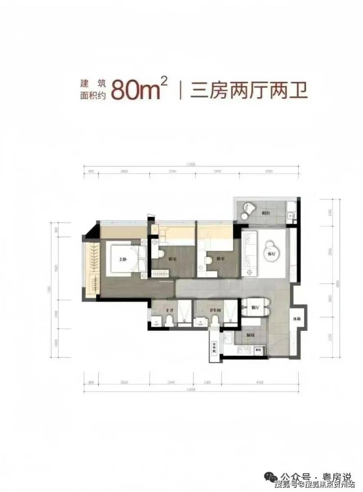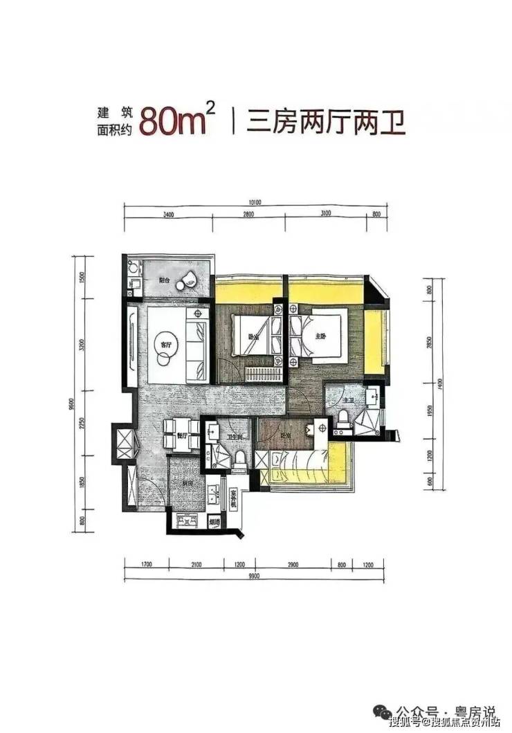 80m²的3房2厅2卫,折后总价297-322万/套,单价3.71-3.98万/m²。