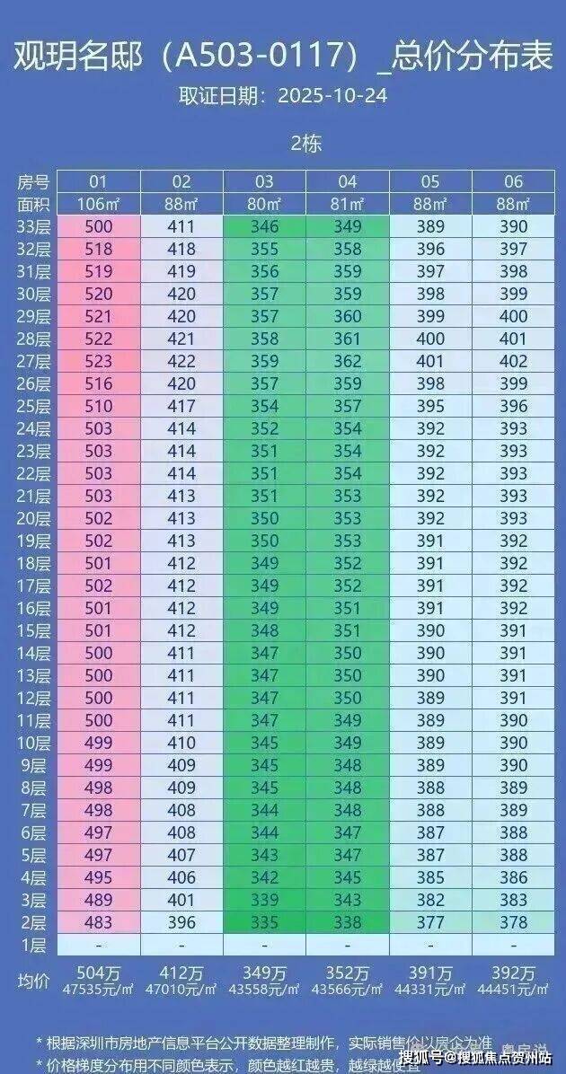 光明城,中建观玥名邸于2025年10月24日取证入市,本次加推2栋,共191套房源,面积有80-89m²的3房2卫,107㎡的4房2卫户型,共192套房源,备案均价4.51万/平,备案单价4.17-4.93万/平,3房总价334-422万,4房总价482-522万,合同约定在2027年3月份带精装交房。