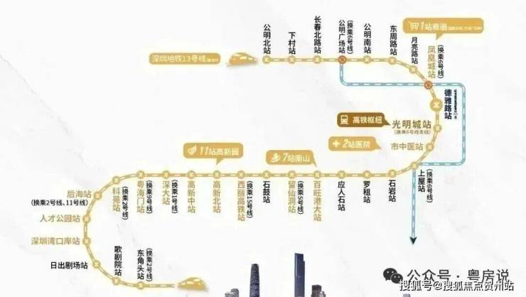交通配套:观玥名邸家门口就是13号地铁线“德雅路站”,以前的同观路站已经改名,最高时速100公里,预计2025年开通运营,1站可到光明城站,换乘6号线/光明城高铁站,3站可到石岩,7站到西丽,8站到留仙洞总部基地,11站到南山高新园。