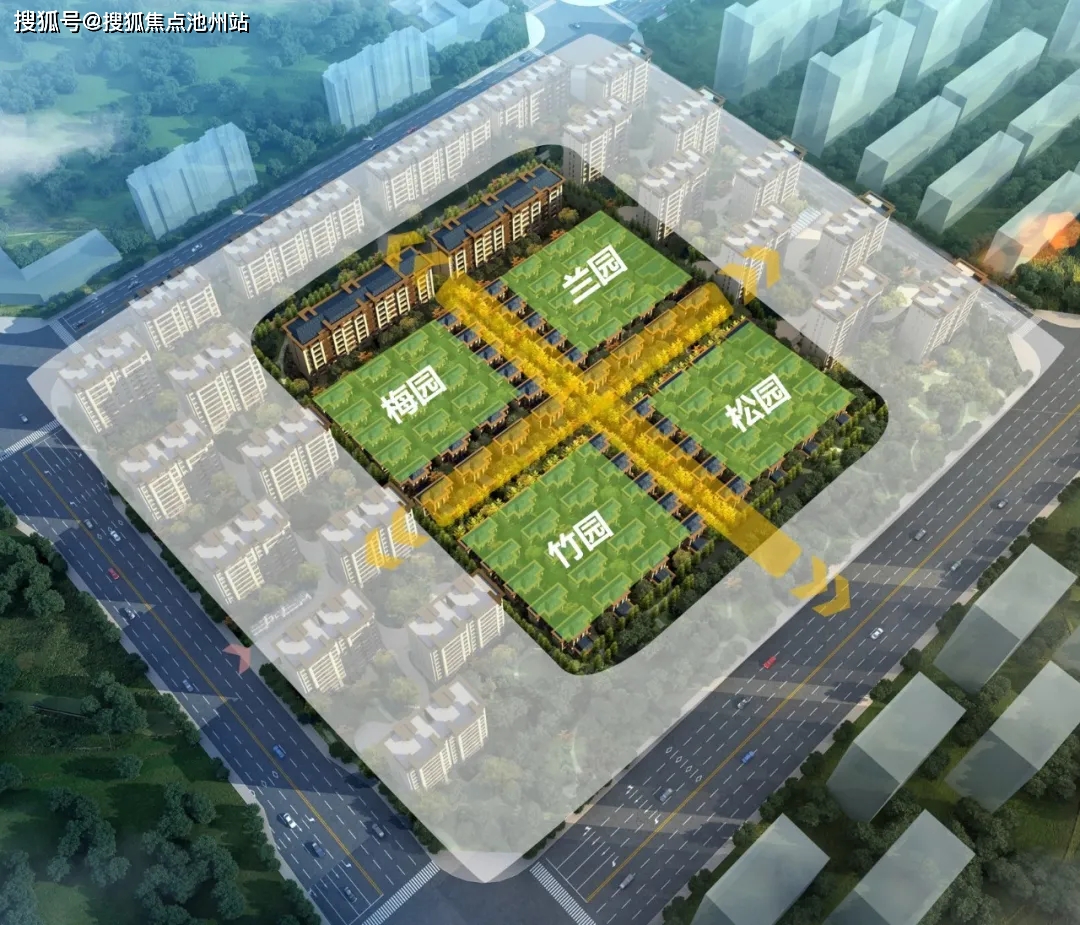 项目强调街巷、里弄、府院等古代城市礼制秩序,注重空间的收放张力与层次等级节奏,院落建筑纵横有序排布,横向不超过8栋,纵向不超过6户,建筑组团间形成三街五巷八坊的空间序列,营造外向、乐生的传统街巷氛围。
