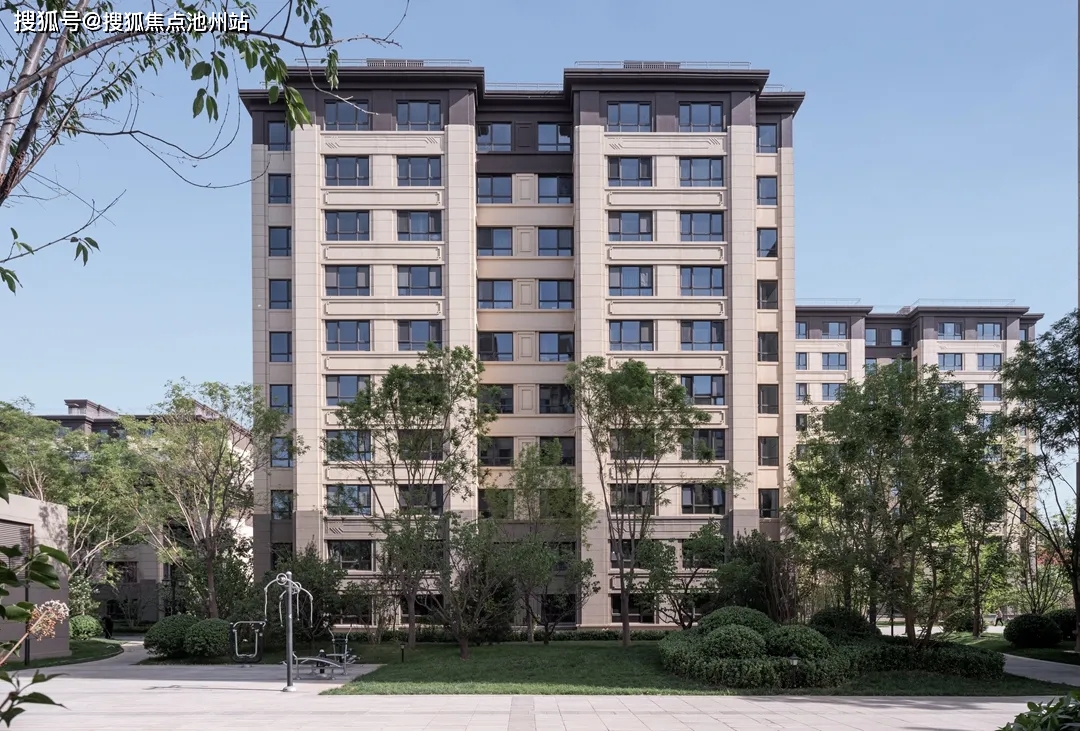 区别于市面色彩浓烈、装饰复杂的传统中式产品,项目建筑以米色石材质感与咖色相互穿插,整体造型简洁,虚实关系清晰,类独栋化立面处理,质感饱满,高档典雅,形成强烈视觉冲击力;