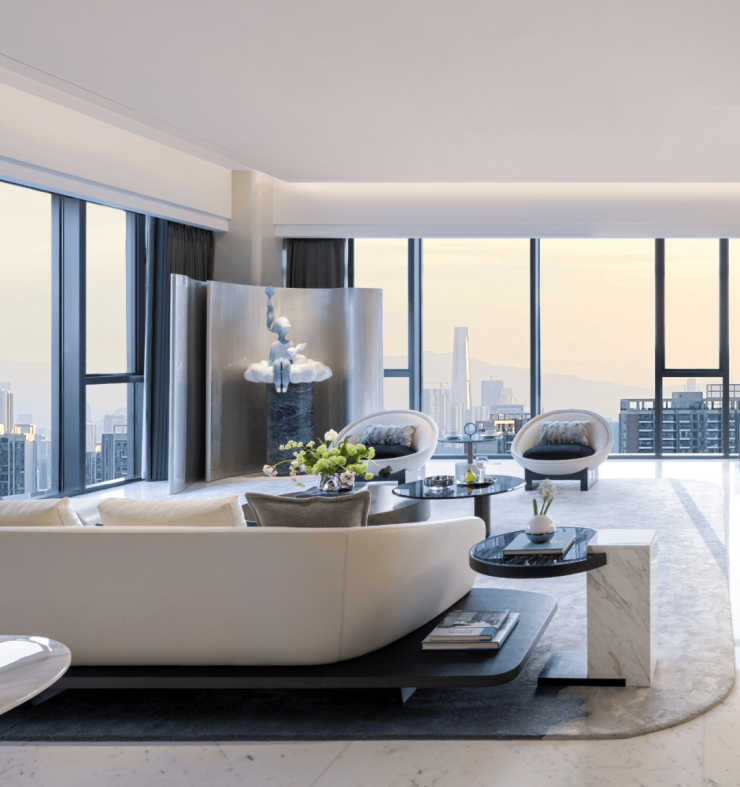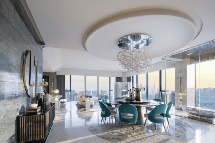 前湾·归源特聘请亚洲设计界领军人物、新装饰主义大师邱德光先生,于建面约370㎡大平层空间场域,设计「绿洲」概念作品。