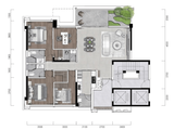 也有约110㎡的明星四房,客厅一面带飘窗,采光更佳,视野更开阔。