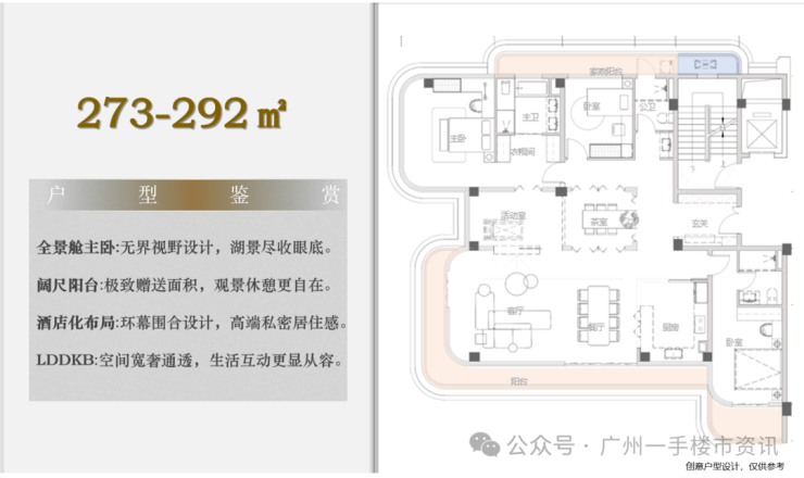 其中观樾二期湖景公寓3F的产品为特殊户型,每一套都是带超大的南向湖景露台,整个项目也仅有10套这种带观景大露台的特殊户型,这是整个广州都非常罕见的湖景大平层公寓产品!