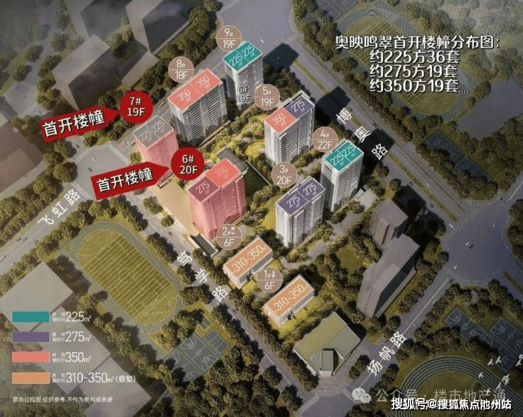 建筑类型:7幢18-22层高层住宅和2幢6层叠墅。