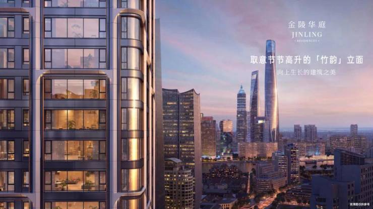 除了骑楼风貌的重现,成片历史街区的复建,优秀历史建筑的保留之外,项目还涵盖两栋超高办公建筑和四幢超高层住宅,这四幢超高层,就是金陵华庭,拥有刷新外滩“第二外立面”的城市天际线。