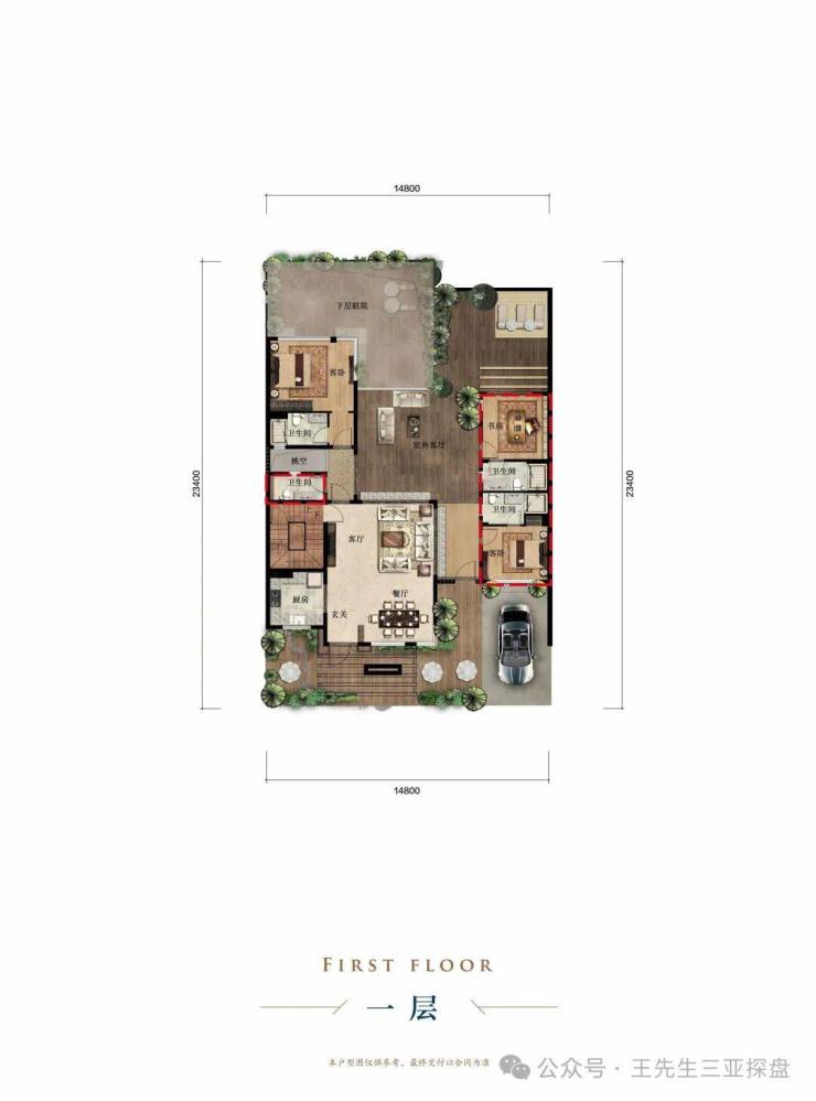 ■首层前庭后院、餐客厅等宽一体设计、双卧室