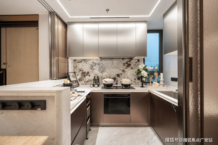 常规厨房平台无法利用的空间死角,在这里也被合理使用,节省出1-2㎡的收纳空间,实打实的获得了房价价值