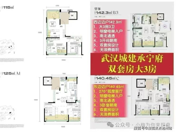 项目共规划7栋住宅,其中包含一栋洋房,预计推出建面约115-170㎡四代住宅。承宁府以2.5的超低容积率,规划套均面积约135平,但项目首期主打建面约115-170㎡户型,起步户型115平,面积不算太大,所以总价门槛比预期要低一些。