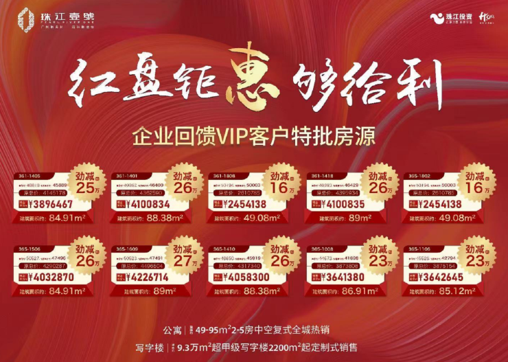 珠江壹号目前主推建面约49-95㎡2-5房复式商服,层高4.5米,中空挑高设计,使用率达150%以上,均价约43000 元/㎡,总价400万起买市中心5房!项目位于海珠区逸景路353号,南望2000亩上涌果树公园、海珠湿地公园,北看广州塔。