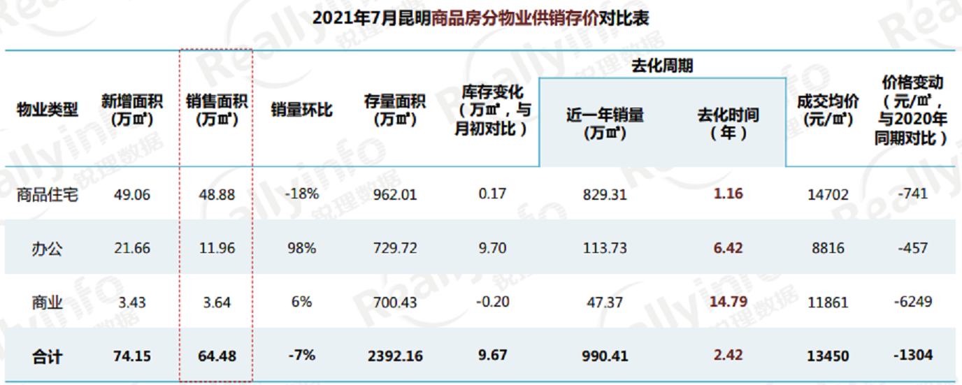 昆明锐理数据也显示,7月昆明商品住宅成交均价环14702元/平方米,创过去一年来新低。其中呈贡、官南、滇池跌幅较大,其他片区降幅不明显。库存量持续走高,商品房住宅库存从2017年的约476.22万平方米,增加至约962.01万平方米,库存翻倍,去化周期也由6.87个月增至13.92个月。