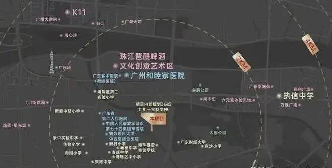 2公里范围内分布有 海珠中学、海珠小学、赤沙小学、广东省轻工职业技术学校(琶洲校区)、广东省海洋工程职业技术学校。