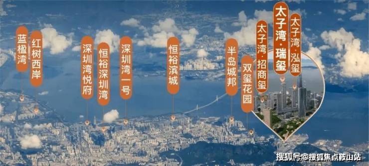 在深圳湾东南走向的15公里黄金海岸线上,瑞玺与招商局广场、海上世界、深圳湾一号、春笋等地标建筑形成深圳西部滨海靓丽城市线。从项目往东北望,海上世界、深圳湾大桥、后海、深超总、福田CBD等都市繁华景观尽收眼底。
