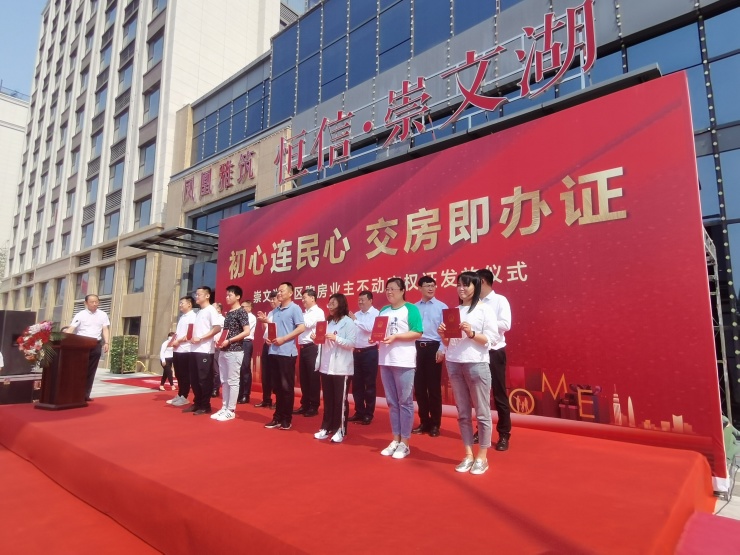 办理不动产权证书的必要条件就是楼盘五证齐全,因此交房即发证,不仅要求楼盘开发和建筑合规合法,也要求开发企业的实力过硬,楼盘质量过关。楼盘建筑过程中、交付前通过政府等相关部门的多次检测、验收,合格后才能进行交付、办证,从而对楼盘的质量、项目工程进度监管和服务质量要求更高。如今,在交房现场发证,让所有业主感受到了恒信“新速度”,用实力将深情和承诺兑现于眼前。