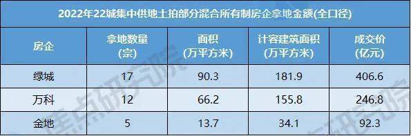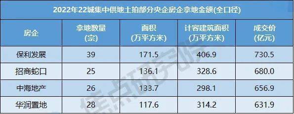 土拍研报 | 2022年22城集中供地房企拿地额排行榜