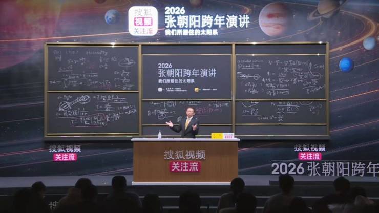 12月31日晚10点,搜狐创始人、董事局主席兼首席执行官、物理学博士张朝阳如期开启他的第三场跨年演讲。这场以“我们所居住的太阳系”为主题的思想盛宴,通过搜狐视频关注流全程直播,在探索太阳系奥秘的思辨中,与现场观众与网友一起一同迎接2026年的第一缕晨光。