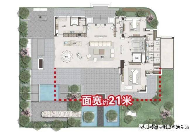 ●南向面宽:约21米,这是一个什么概念,相当于一个标准双打网球场宽度的两倍。