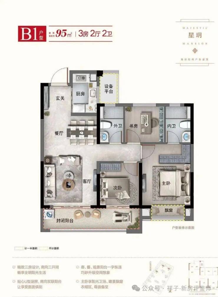 高层 B1户型 建筑面积约95㎡ 3房2厅2卫
