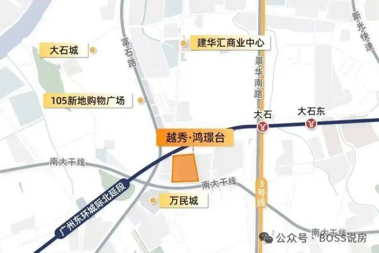 地铁:步行约 700 米至 3 号线大石站,1 站到万博 CBD、6 站直达珠江新城;规划地铁 26 号线群贤路站(已过环评),未来 5 站到客村、6 站抵珠江新城,与 3 号线平行分流。