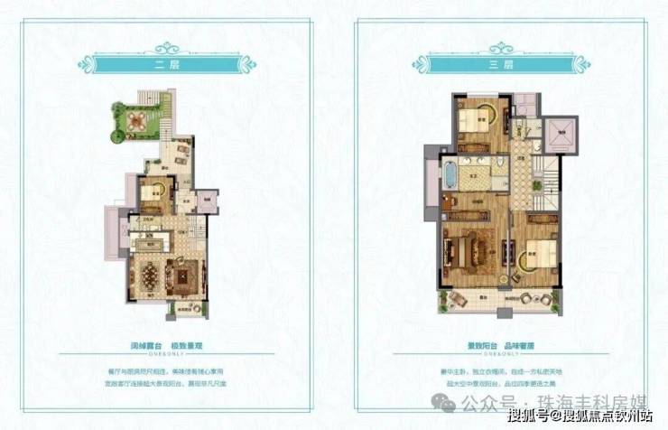 一线伶仃洋海景,将园林风景藏入家中,上叠位置最高,私密性相对较高,共3层空间,4楼可打造成公共休闲区;5楼则是纯粹休息区;顶层分为阁楼和露台