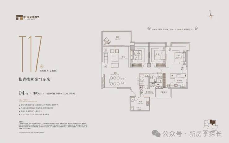 ▼ T17栋04户型 195㎡ 三房两厅两卫+独立工人房、卫生间