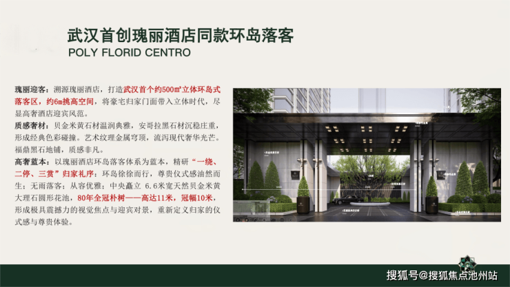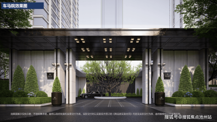 更为难得的是,项目为片区首例配置酒店式落客车马院,参考瑰丽酒店风格设计,打造约88米宽瑰丽门庭+500㎡环岛式落客车马院,形成人行+车行双酒店式归家礼序。