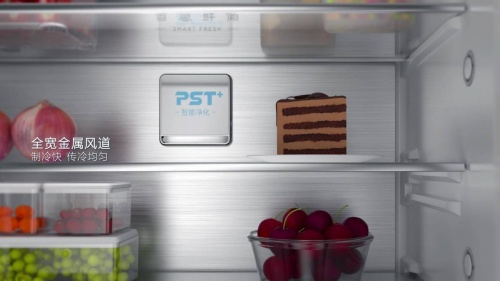 以美的净味冰箱2022全新一代产品美的净味冰箱521来举例,它的原有产品核心净味组件全部升级,所搭载的PST+智能净化技术也是较新的4.0版本,不仅可以做到19分钟急速净味,还能99%除菌除病毒除乙烯。