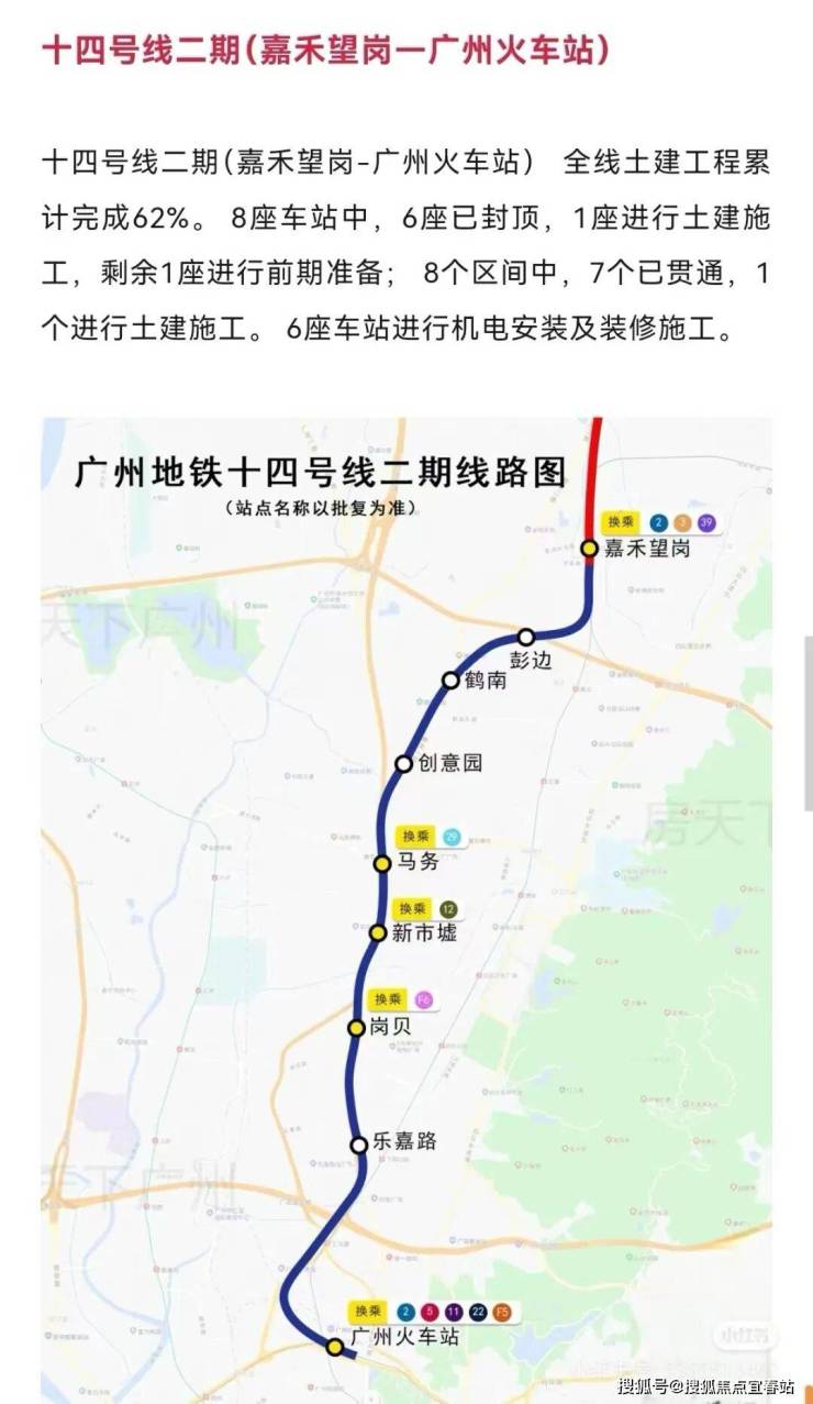 目前14号线二期(嘉禾望岗-广州火车站)24年8月份土建工程进度62%,预计2025年建成(具体时间以官方公告为准)。
