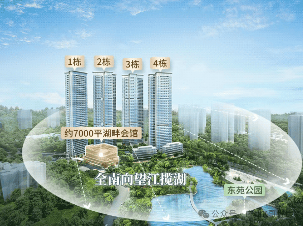 建面约142㎡的四房,做到约16米南向采光,站在约8米全景阳台,约1.2万㎡湖景扑面而来,高层还能望江。