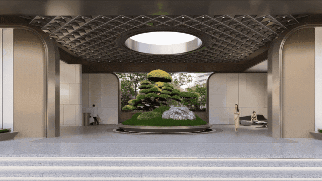 “天圆地方,林下门庭,一石一松”的造景,不仅带来“风水聚宝盆”的美好寓意,也铺设出尊崇归家礼序。