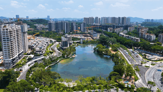 项目环抱约5.3万㎡日月双湖,负氧离子浓度超珠江新城44倍,这种“城央湖居+约243万㎡原生山林”的生态配置,广州主城独一份。
