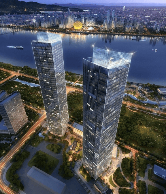 生态资源:项目西侧直线距离约500米即是萧山城市公园(城市绿肺),东侧紧邻钱塘江(萧山段)景观带,推窗可见公园绿意、出门即入江风氧吧,“都市繁华”与“自然诗意”在此完美交融。