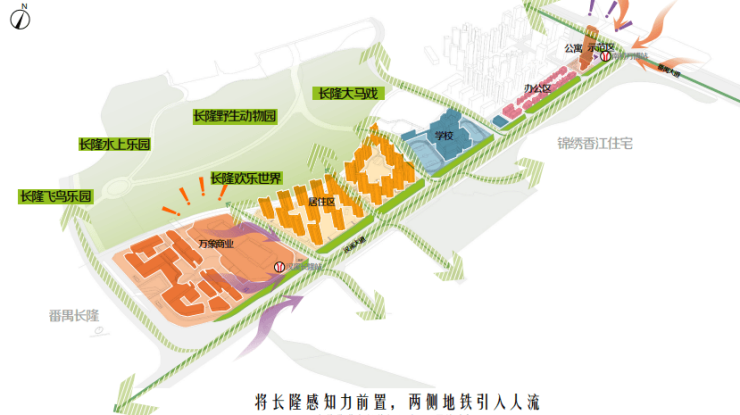 于外,四通八达的万象之路如一张大网,将长隆乐园、地铁线路、万象商业、高端教育全部联结。