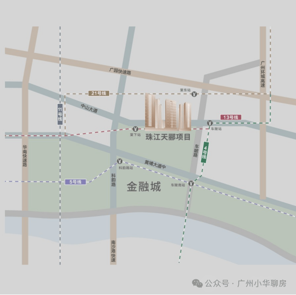 【Top5:赶超珠江新城 极速生活圈】项目紧邻地铁13号线二期棠下站(预计2023年底通车,地铁联通口已预留,最终以政府部门规划为标准),10分钟抵达金融城交通枢纽,并以3+4+5超级交通枢纽,构建1小时湾区资本圈!