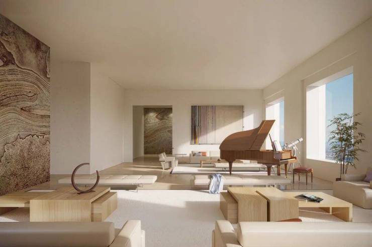 至高约16.8m四开间面宽朝阳,引阳光清风自由流动,空间明亮通透,匹配居者开阔的人生视野与格局。