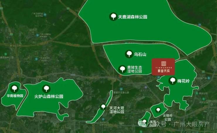 临近约880公顷的天鹿湖森林公园,周边天河湿地公园、黄陂生态湿地公园、科学城体育公园、天鹿湖森林公园、华南植物园、火炉山森林公园等6大公园环绕。低密鲜氧环境,成就生态奢宅居住体验