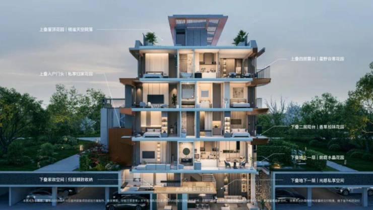 在这个立体空间体系中,摒弃了叠加别墅中资源更加集中在下叠、而忽略上叠居住尺度的传统设计,而是做到了史诗级的创新,实现真正的平权——