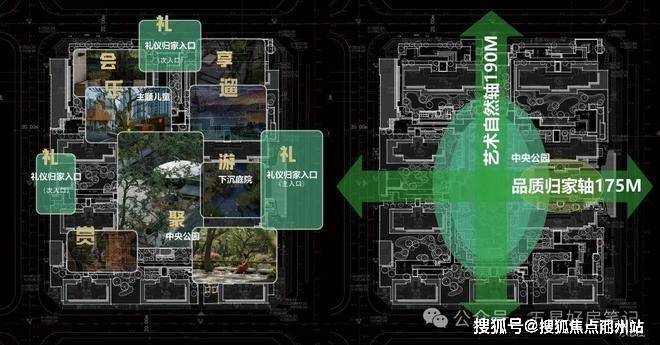 项目园林景观以自然为基底,精奢艺术为腔调,精心打造两轴、多园、七庭结构,以归家动线划分景观空间,多功能中央公园自然绿肺,七大主题庭院承载不同度假感氛围,深化“礼、乐、品、赏、游、聚、遛”人居景观体验。