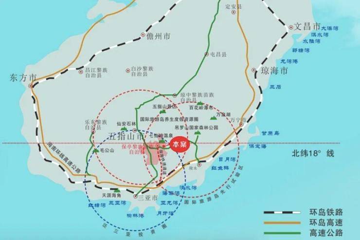 (保亭七仙岭)2. 🚄 多维交通,旅居全岛✊ 🚗 1小时三亚生活圈 登山·赶海·嗨购全岛贯通“丰”字型+环线路网,实现全岛通达, 目前中线高铁在规划中,由海口铁路枢纽海口站出发,向南经定安县、屯昌县、琼中自治县、五指山市(县级市)、保亭自治县,止于三亚站;