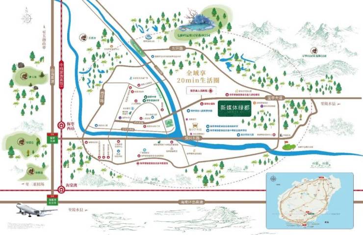 🏯 20分钟全域享生活圈新媒体绿都,位于保亭县宝亭大道南侧,政务新区核心地段,县内四方畅行,生活所需配套一应俱全;🏥 直线约700m距离:保亭县人民医院🏘 一路之隔零距离:保亭县人民检察院、保亭县最大体育、休闲、漫步公园(健设中)、康养理疗中心(规划中)🌠 直线约2km距离内:保亭汽车站、保亭七仙广场、七仙河、保亭中学、保亭实验中学、农贸市场、超市等