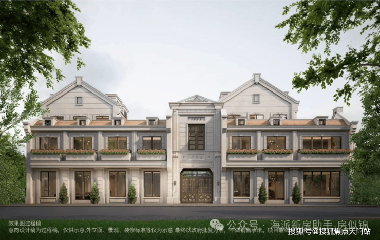 建筑立面通过明确的基座、主体与檐部层次,再现了经典新古典主义的庄重比例。