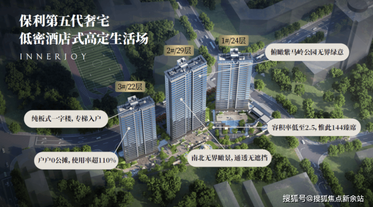 其中,1栋为24层,2栋为29层,3栋为22层,可实现俯瞰紫马岭公园以及园林景观。