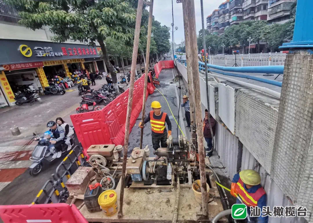 今天上午,记者在现场看到,桥梁应急维修工作分多个工作面开展,除西北匝道最右侧一车道外,其他车道照常开通放行。十多名施工人员在忙碌着修复桥面,桥下的钻探机也已经就位。现场工作人员介绍,计划在桥梁台背打孔,成孔后进行注浆,保证地基不下沉。