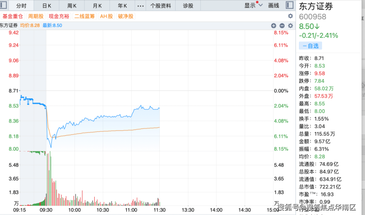 10月17日上午,东方证券股价跳水,一度跌超8%,截止收盘仍跌2.4%报8.5元/股,10月以来已跌超11%。
