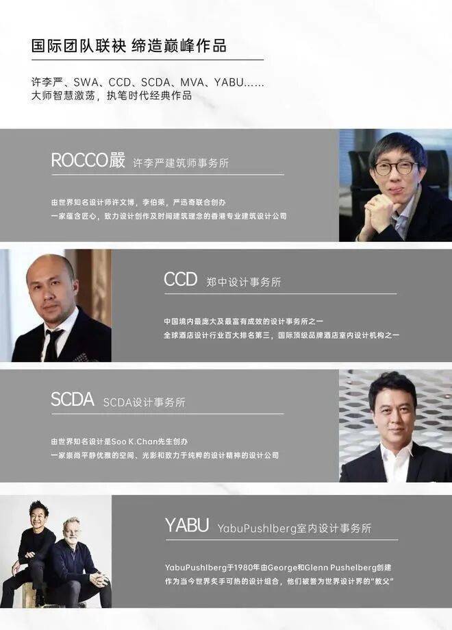 许李严、CCD、SCDA、YABU、ALT、SWA、MVA、迈进等国际顶级大师团队的智慧在此集结。