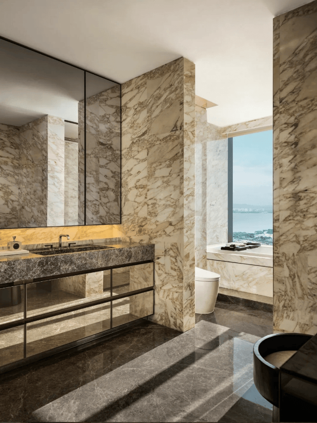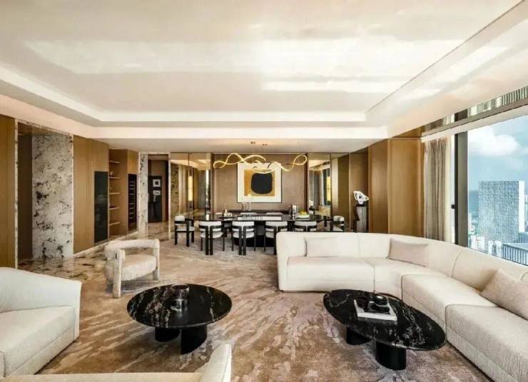 全球多达6种的稀贵奢石装点着室内,大面积、流动纹路的天然石材运用更是给人“一入户就震撼”的视觉冲击。土耳其古堡灰、意大利威尼斯棕、意大利鱼肚金和迪奥金……让室内成为一座奢石博物馆。