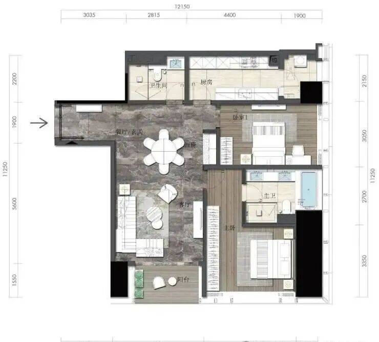 约164㎡2房2厅2卫(独立入户玄关,动静分离,约33㎡豪华主卧,承载品质生活)