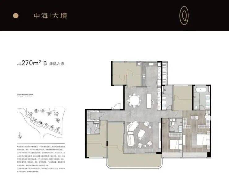 户型设计主打改善型需求,主力产品为 125-270㎡三至五房。